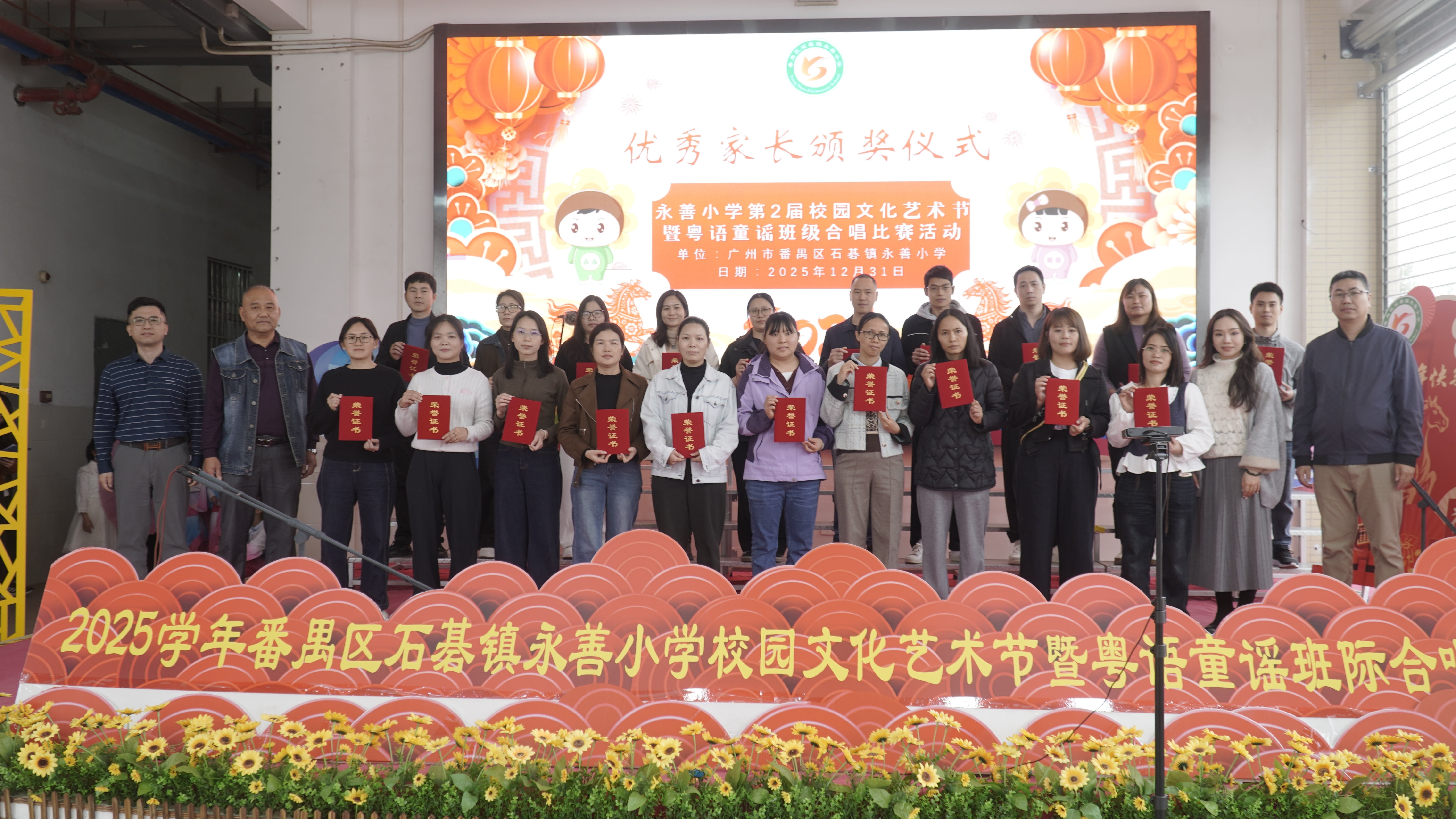 致辞结束后,现场迎来温馨的颁奖环节。华南师范大学优秀支教老师以及为学校发展默默奉献的优秀家长依次走上舞台,接受表彰。台下师生与家长纷纷报以热烈掌声,掌声里满是敬意与感谢,生动诠释了校家社协同育人的温暖力量。
